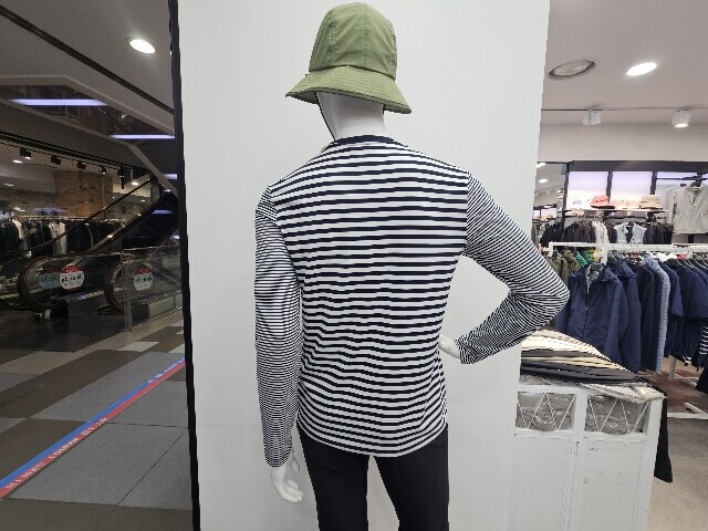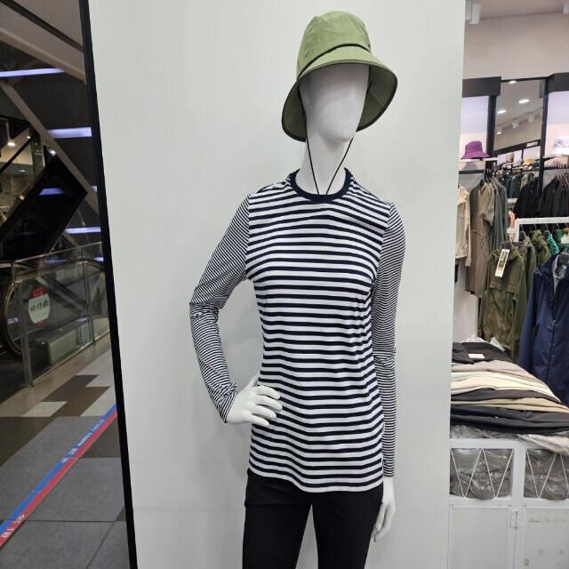 WN1WCTR402 NV 우먼 스트라이프 라운드 긴팔 티셔츠