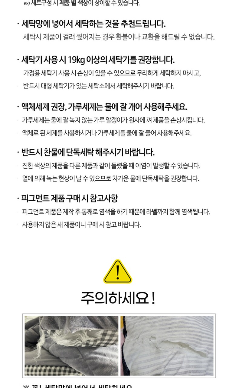 7. 세탁방법 및 취급시 주의사항 | (상품기본정보) 원산지 |
