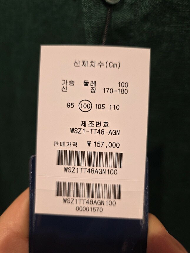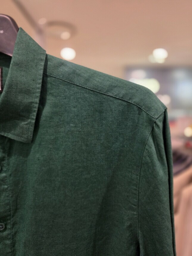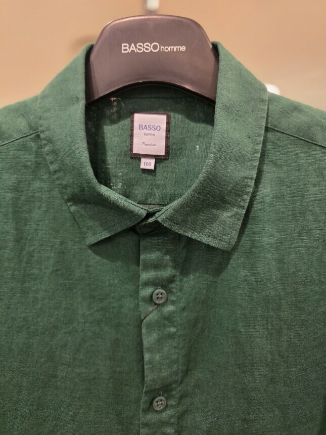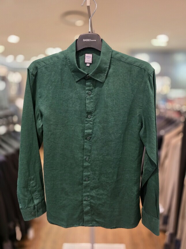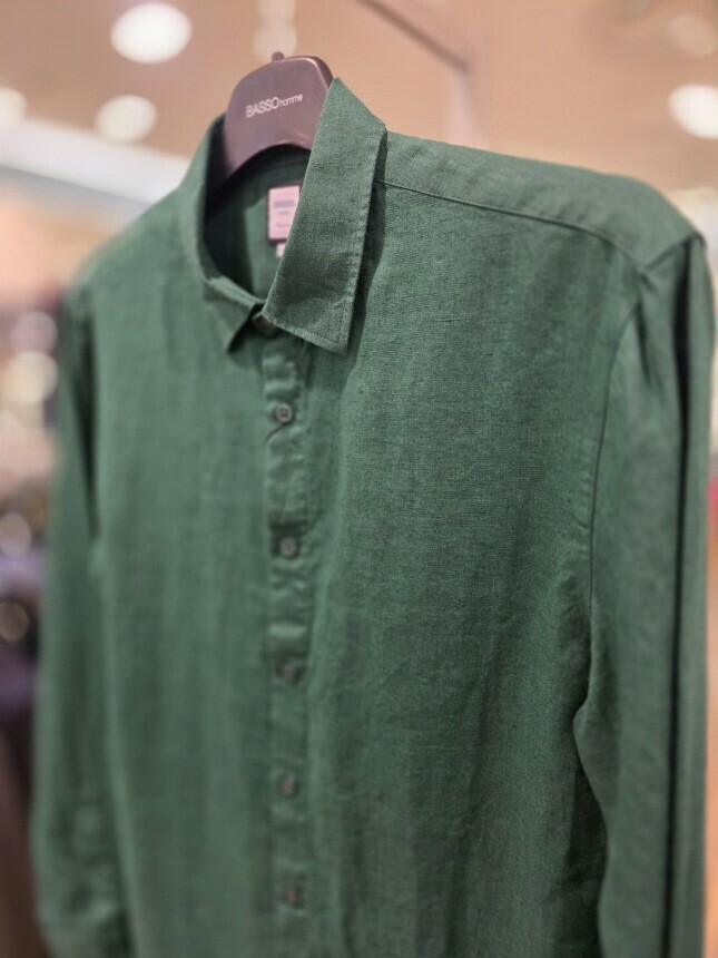 [바쏘옴므] Z1TT48A 25년 그린 마100% 솔리드 캐주얼 셔츠