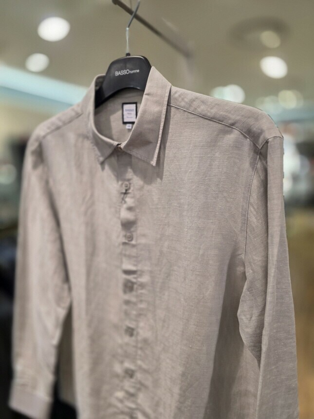 [바쏘옴므] Z1TT81A 25년 라이트그레이 세미오버핏 마혼방 솔리드 캐주얼 셔츠