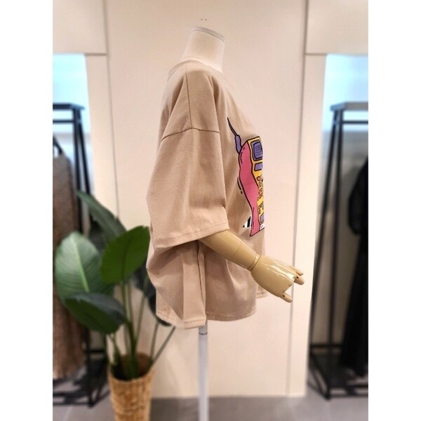 KKTSP505BE_90 프린팅 박시 반팔 티셔츠 베이지