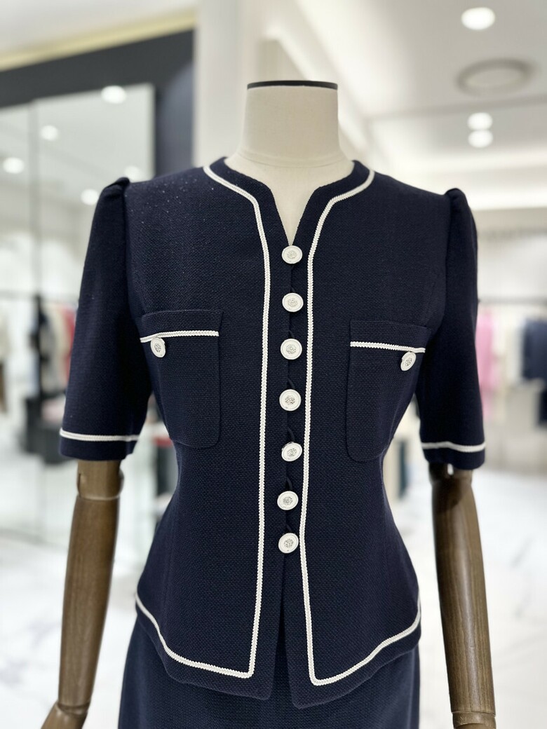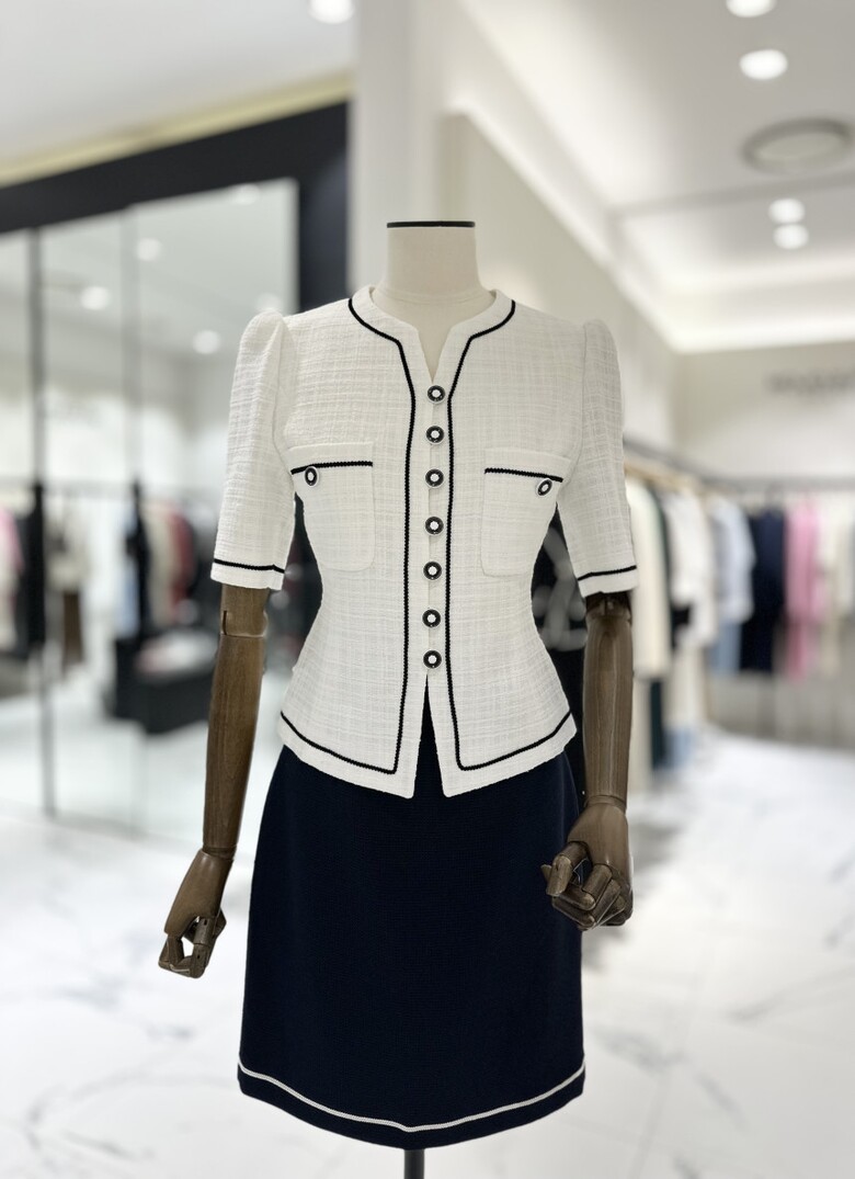 모조에스핀 라인 배색 트임 셋업 반팔 자켓 S252MSF131