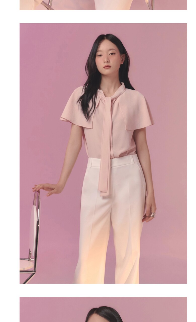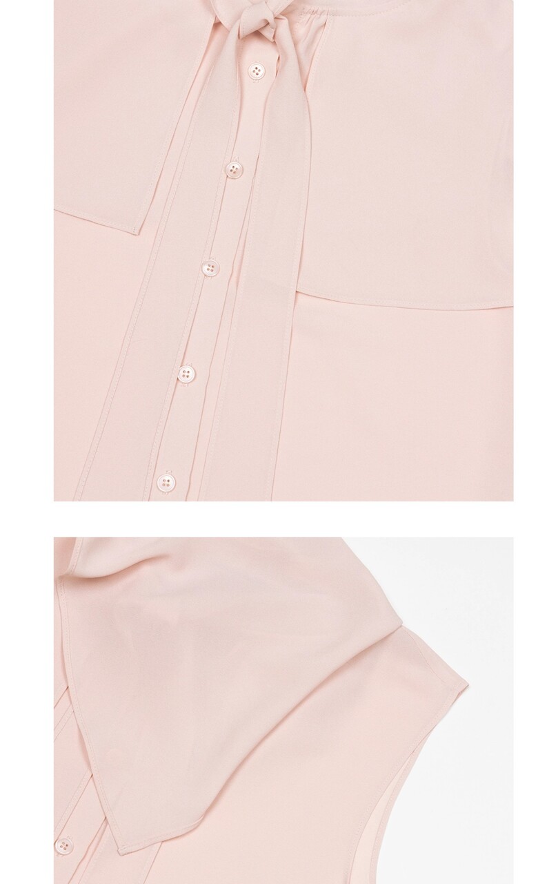 넥 라인의 타이가 포인트이며|*| 타이와 리본으로 자유롭게 연출 가능해 페미닌한 무드를 더할 수 있습니다.