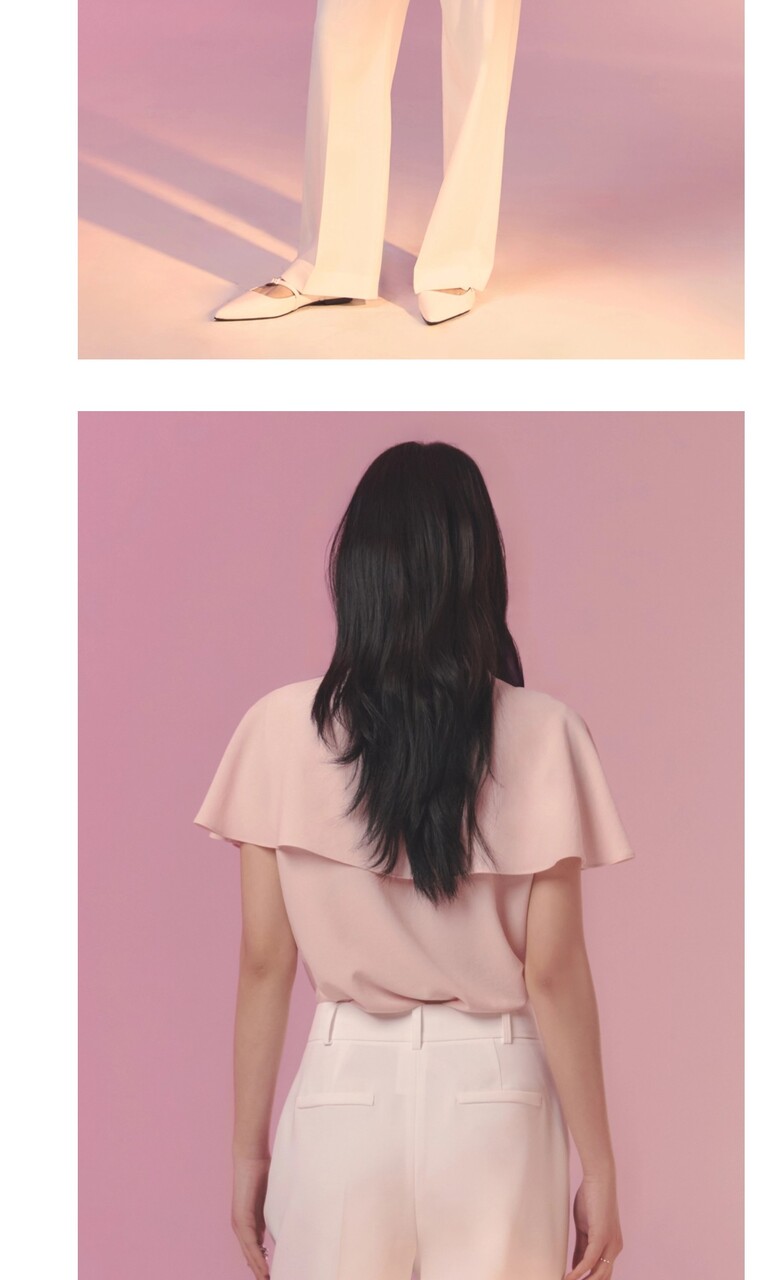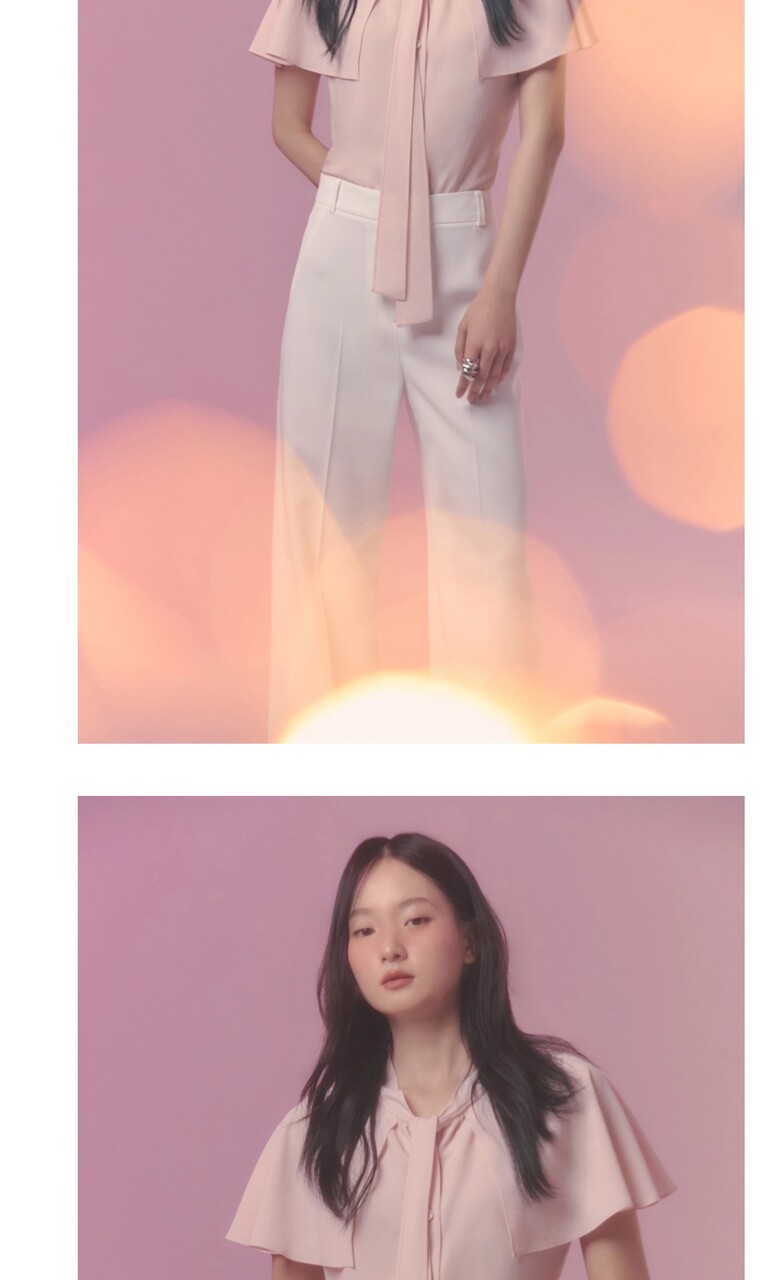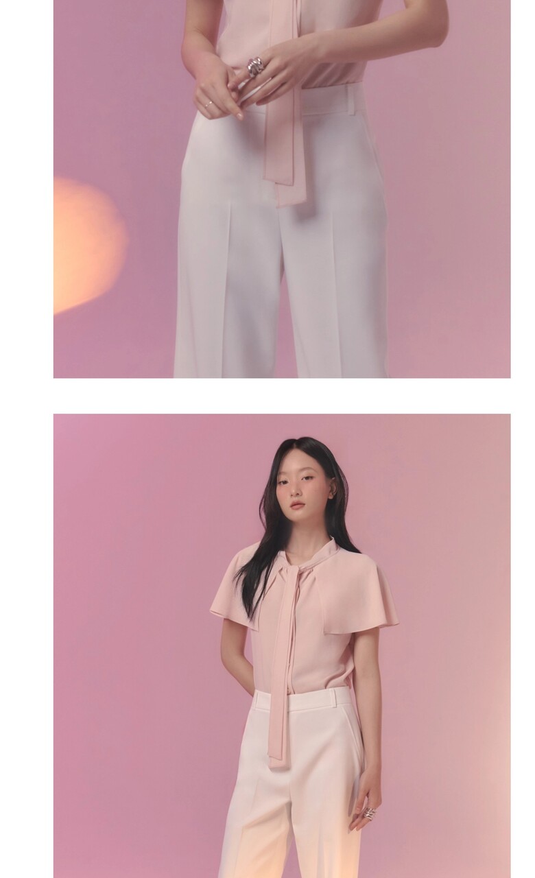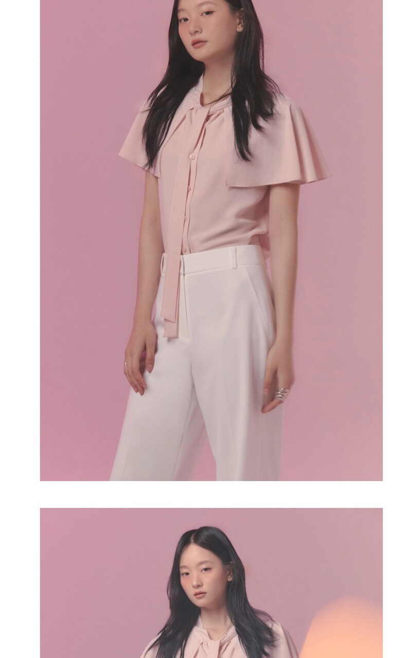 케이프 디자인으로 여성스럽게 연출되는 블라우스입니다.