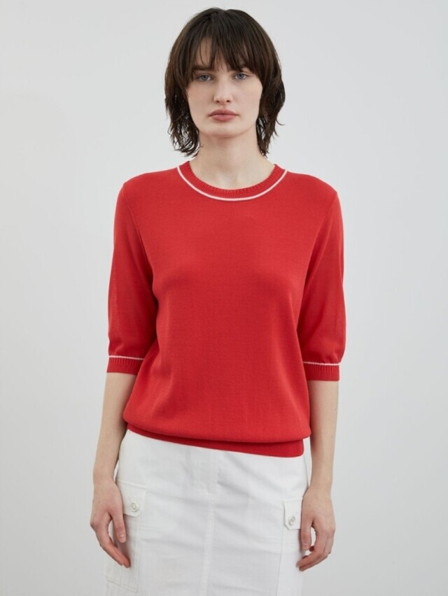 [올리비아로렌]배색 포인트 라운드니트VOBBS4M3441