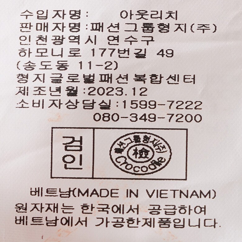 | 6. 세탁방법 및 취급시 주의사항 | 상품상세참조 |