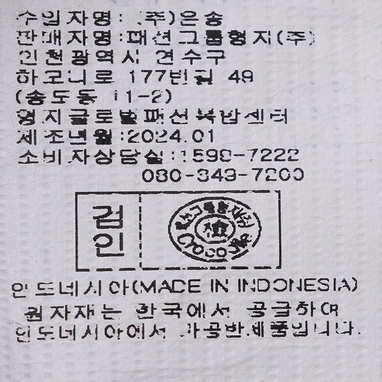| 1. 제품 소재 (섬유의 조성 또는 혼용률을 백분율로 표시, 기능성인 경우 성적서 또는 허가서) | 상품상세참조 |