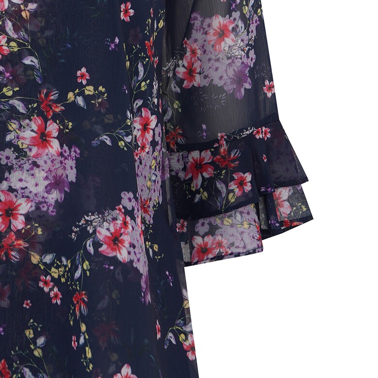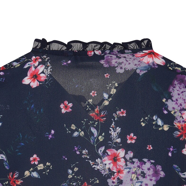 여성스러운 플라워 프린트가 단독 착장시 블라우스처럼 차려입은듯한 효과를 주는 아이템입니다