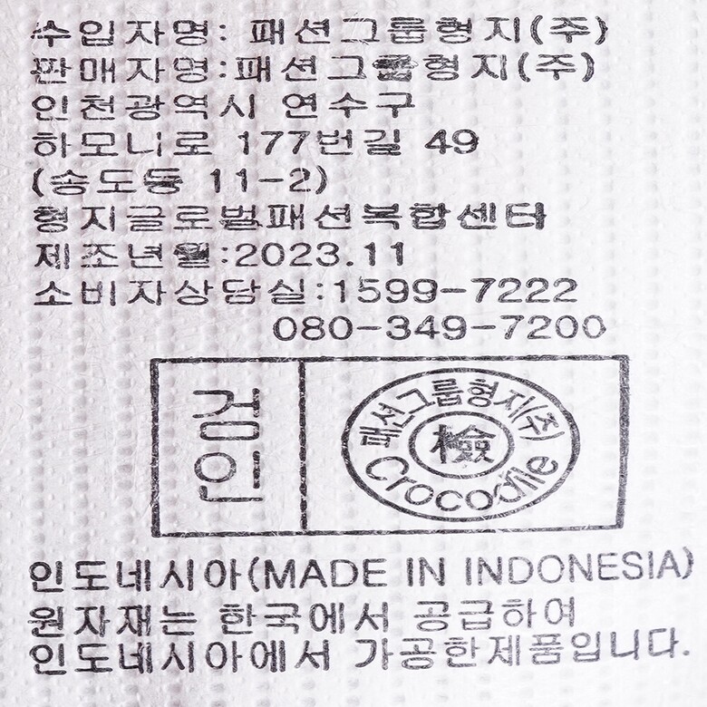 | 1. 제품 소재 (섬유의 조성 또는 혼용률을 백분율로 표시, 기능성인 경우 성적서 또는 허가서) | 상품상세참조 |