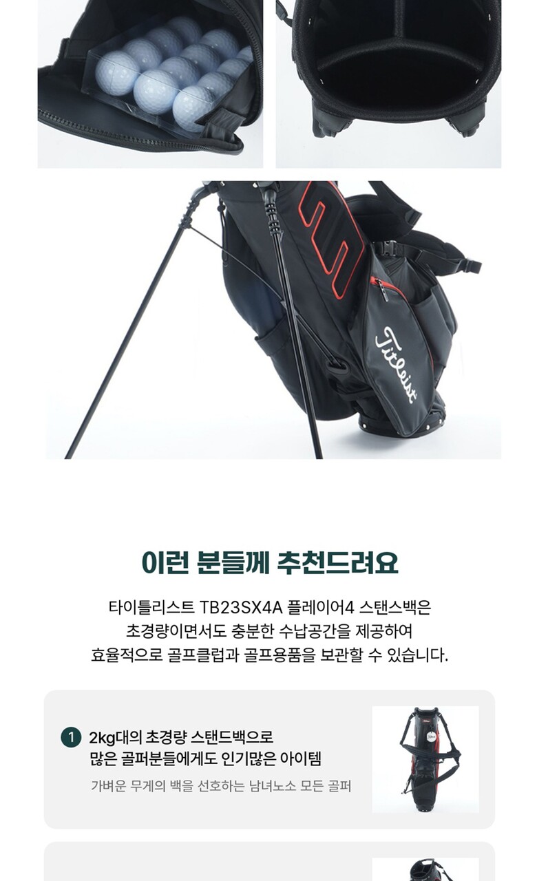 타이틀리스트 캐디백 TB23SX4A 플레이어4 초경량 스탠드백 골프가방 골프백 당일발송
