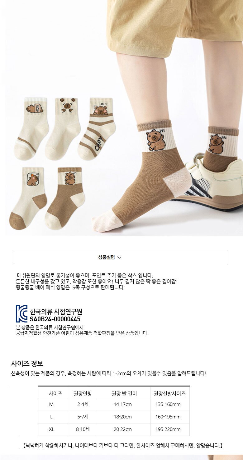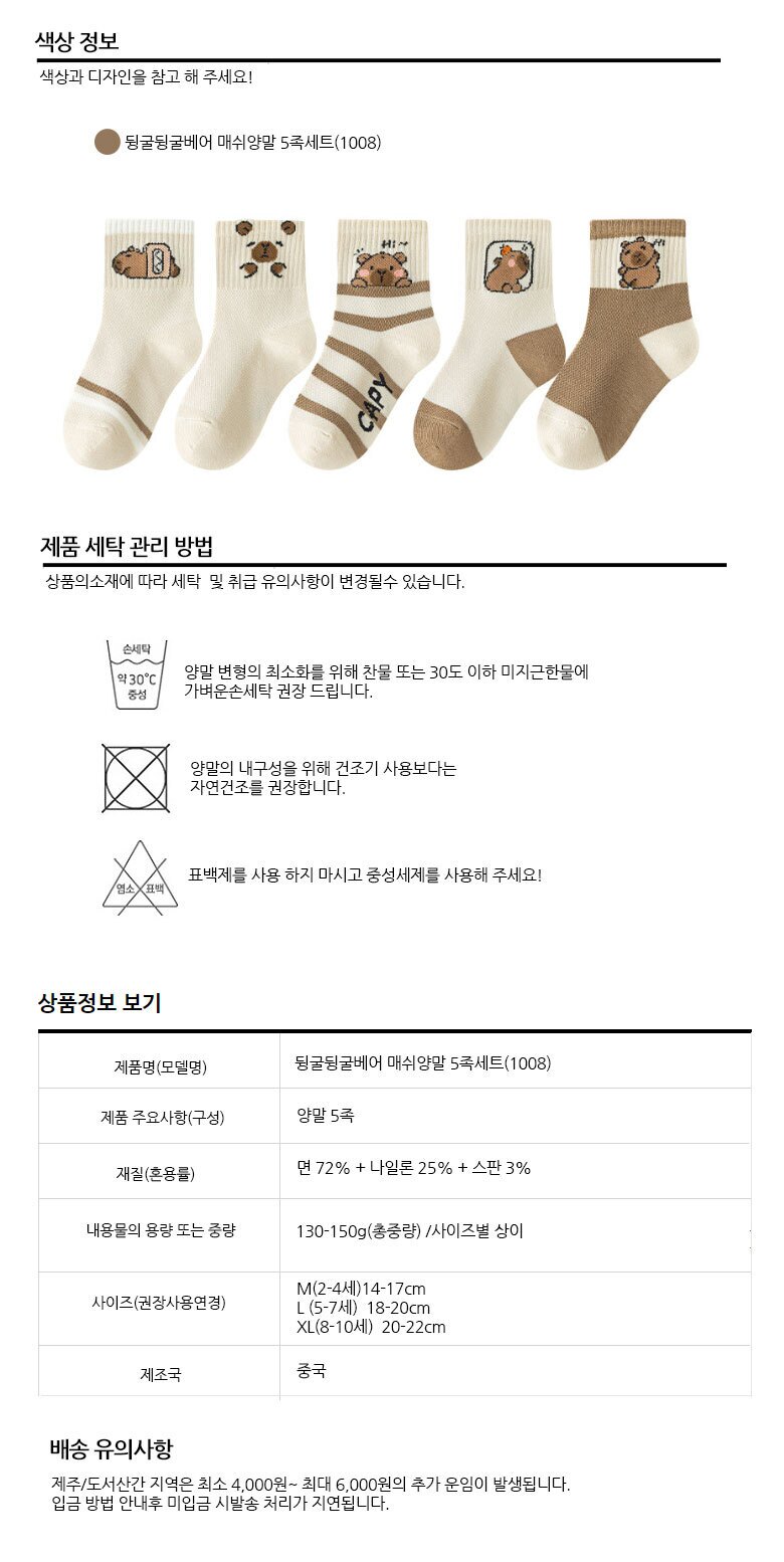 뒹굴뒹굴베어 매쉬양말 5족세트(1008)