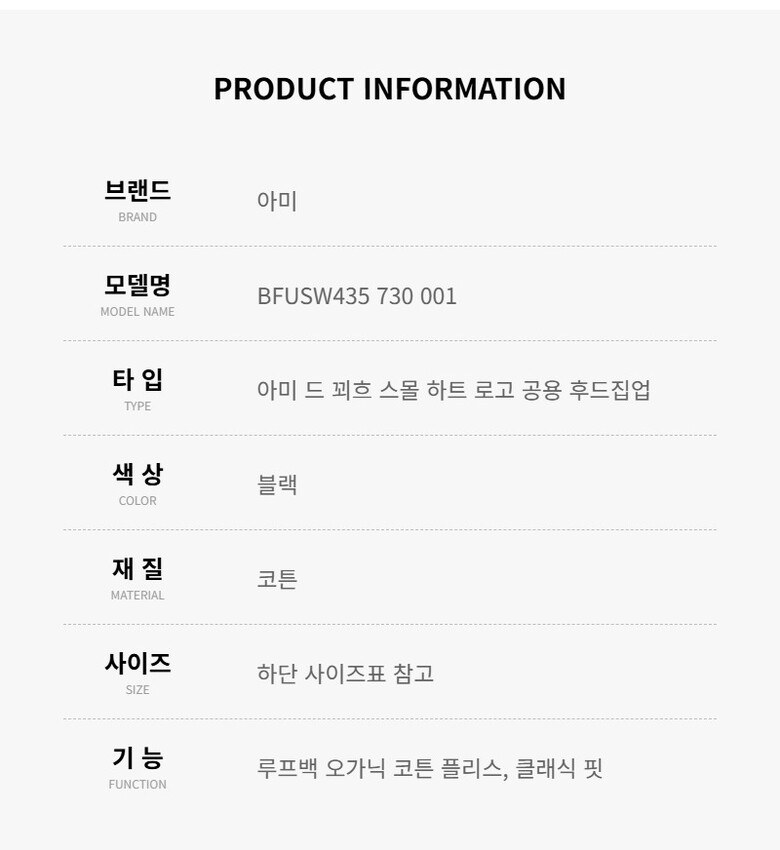 아미 후드 BFUSW435 730 001 아미 드 꾀흐 스몰 하트 로고 남성후드집업 여성후드집업 당일발송