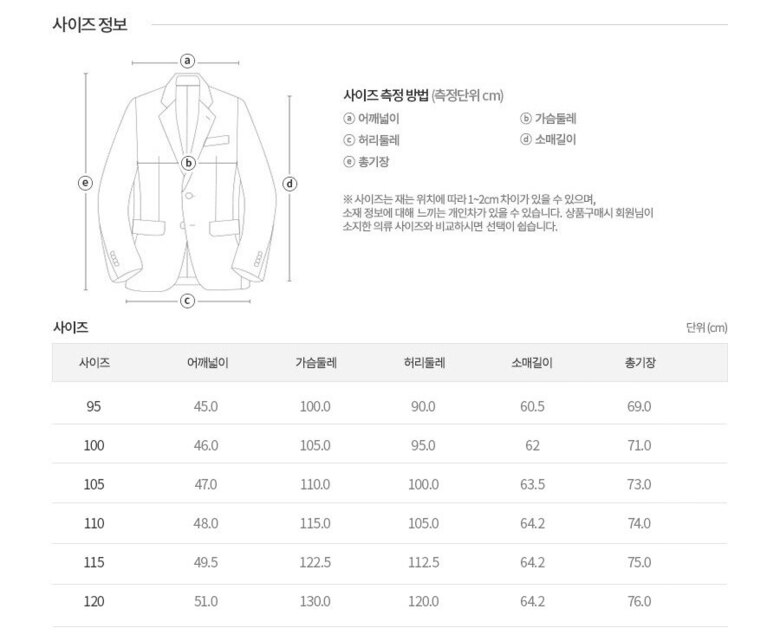 | 1. 제품 소재 (섬유의 조성 또는 혼용률을 백분율로 표시, 기능성인 경우 성적서 또는 허가서) | 면 : (45%), 모 : (27%), 레이온 : (17%), 마 : (10%), 폴리우레탄 : (1%) |