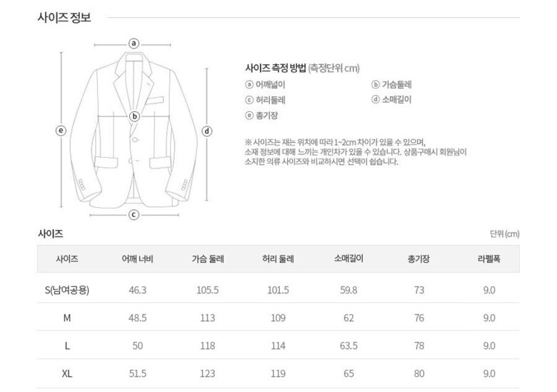 | 1. 제품 소재 (섬유의 조성 또는 혼용률을 백분율로 표시, 기능성인 경우 성적서 또는 허가서) | 겉감: 폴리에스터66%, 레이온30%, 폴리우뢰탄4%, 안감: 폴리에스터100% |
