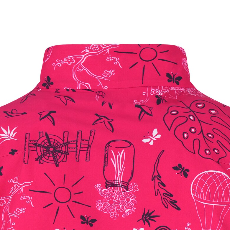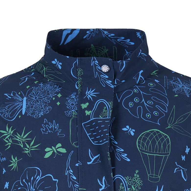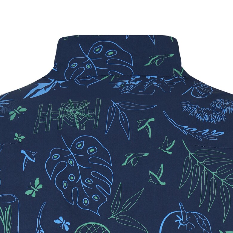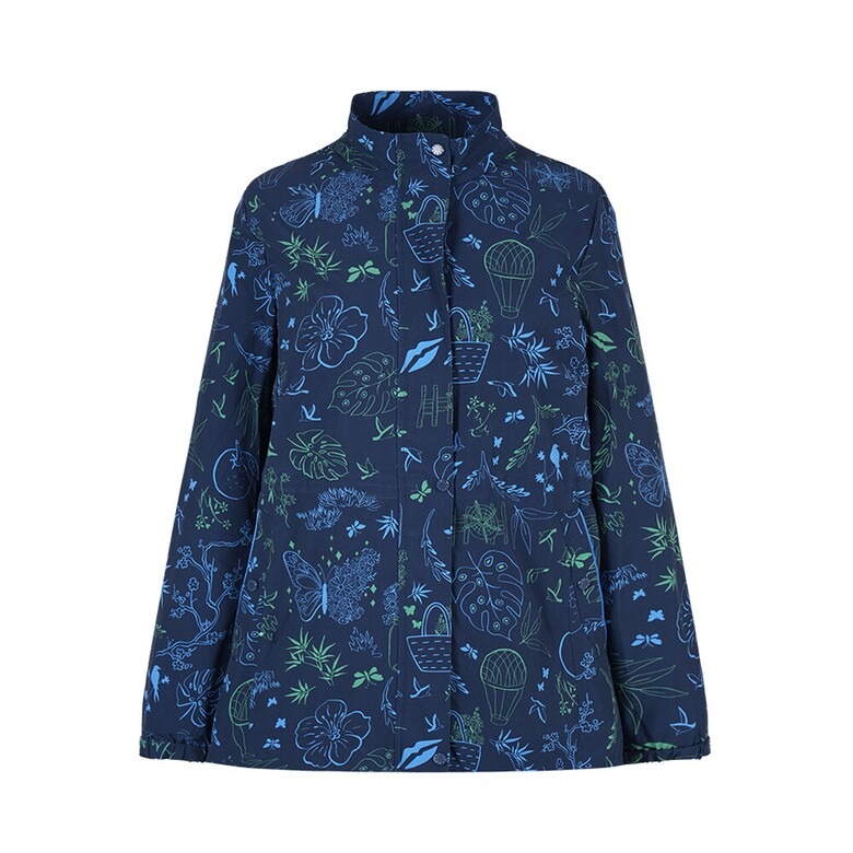 모티브를 라인으로 따서 프린트에 접목한 감각적인 여름 점퍼아이템. 벤틸 기능을 접목시켜 통풍이 용이하며 허리에 스트로우 기능을넣어 다양한 실루엣 연출가능.