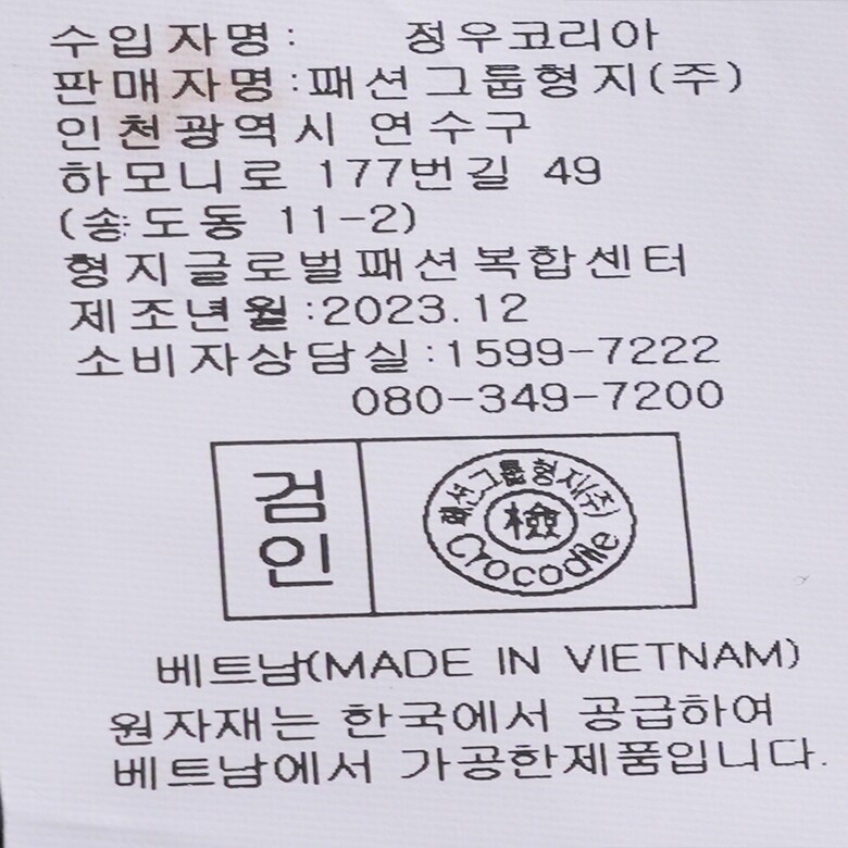 | 1. 제품 소재 (섬유의 조성 또는 혼용률을 백분율로 표시, 기능성인 경우 성적서 또는 허가서) | 상품상세참조 |