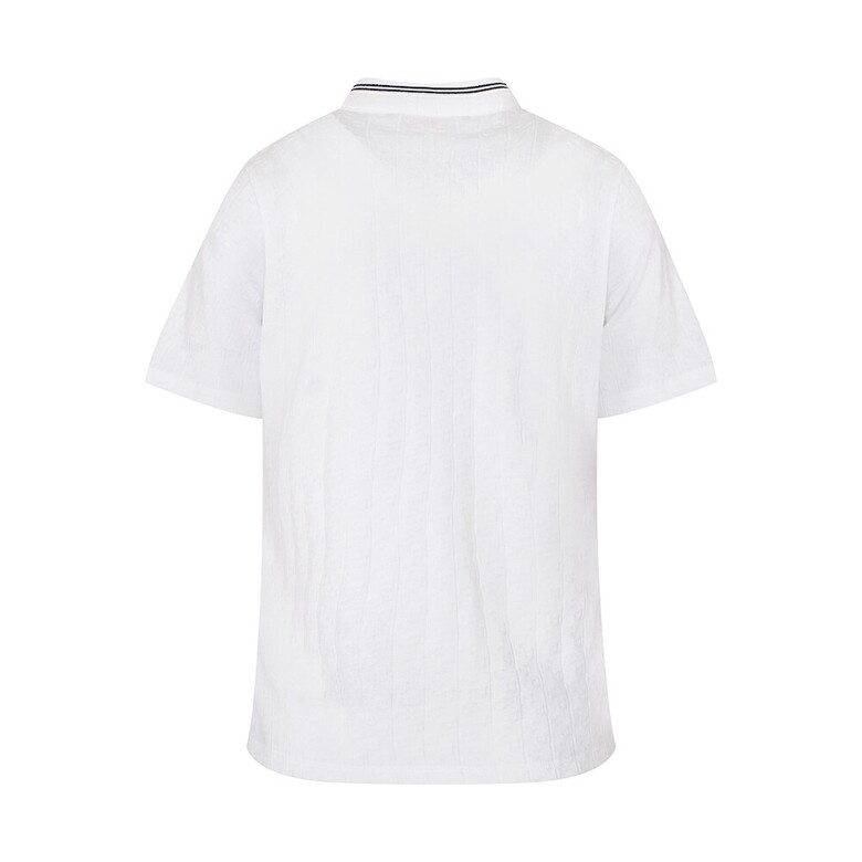 전판 로고 자가드 소재를 사용하였고 에리 메탈 믹스 요꼬와 가슴 포켓디테일이 세련되고 깔끔한 느낌을 주는 반집업 티셔츠