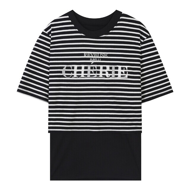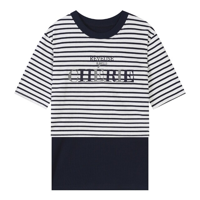 베스띠벨리 배색 보더 레이어드 티셔츠BIIBG28490