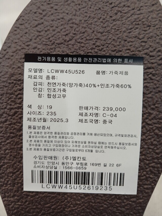 | 1. 제품 소재 (운동화인 경우에는 겉감, 안감을 구분하여 표시) | 상품상세참조 |