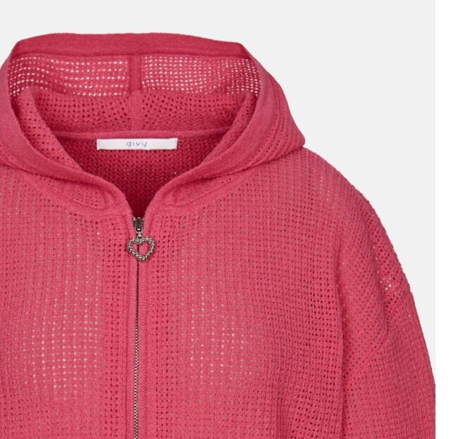 진핑크 색상이 화사한 후드니트 가디건입니다.