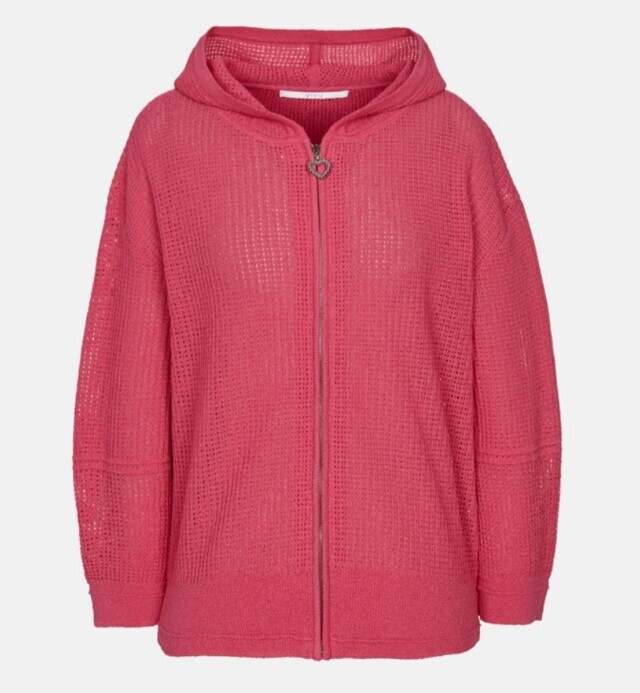 진핑크 색상이 화사한 후드니트 가디건입니다.