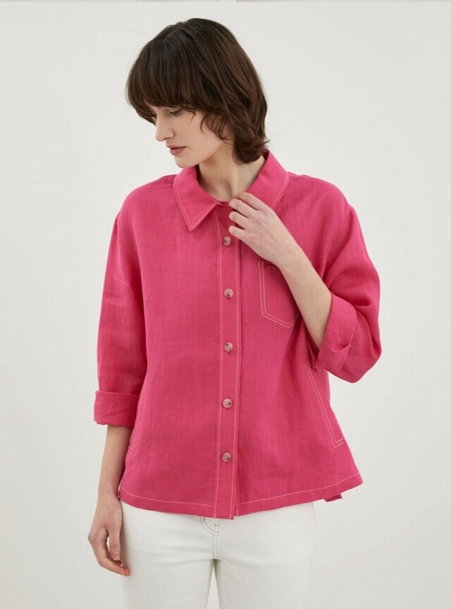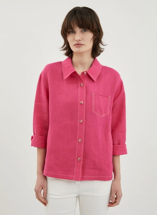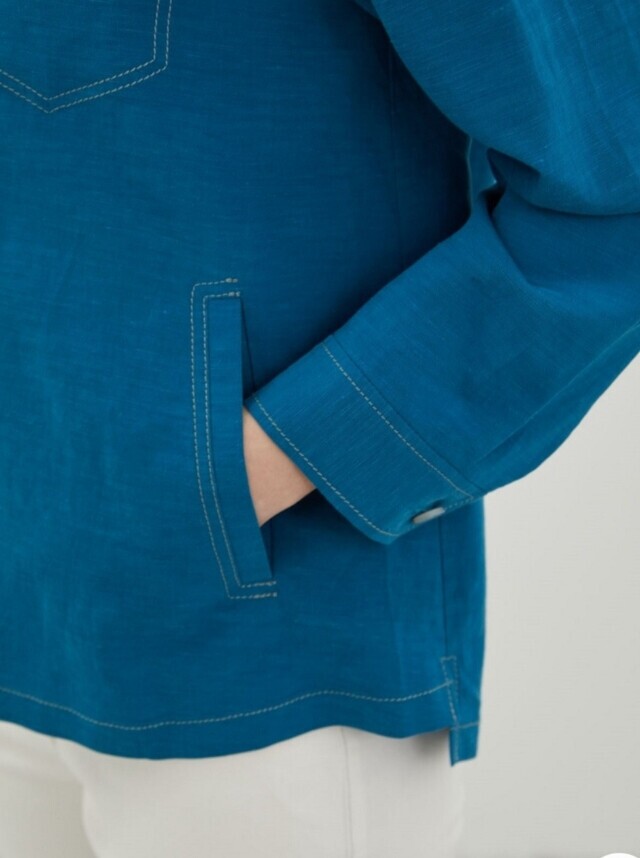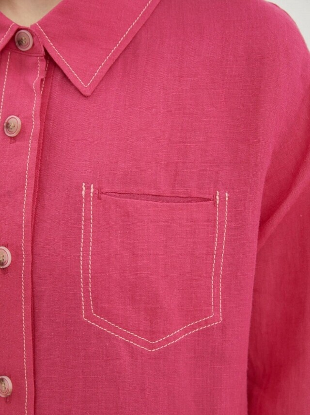 [올리비아로렌]배색 스티치 린넨 셔츠VOBNL4M3151