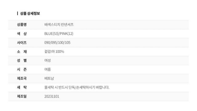 | 1. 제품 소재 (섬유의 조성 또는 혼용률을 백분율로 표시, 기능성인 경우 성적서 또는 허가서) | 상품상세참조 |