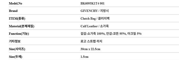 [명품] 지방시 BK6093K1T4 001 4G 로고 라지 클러치백