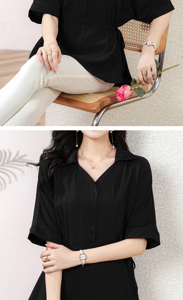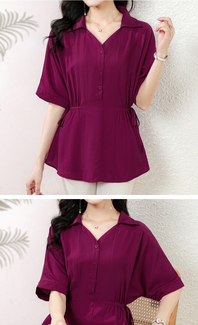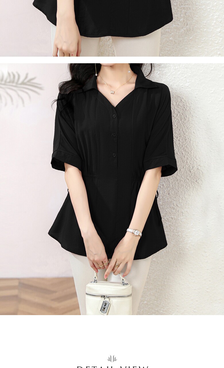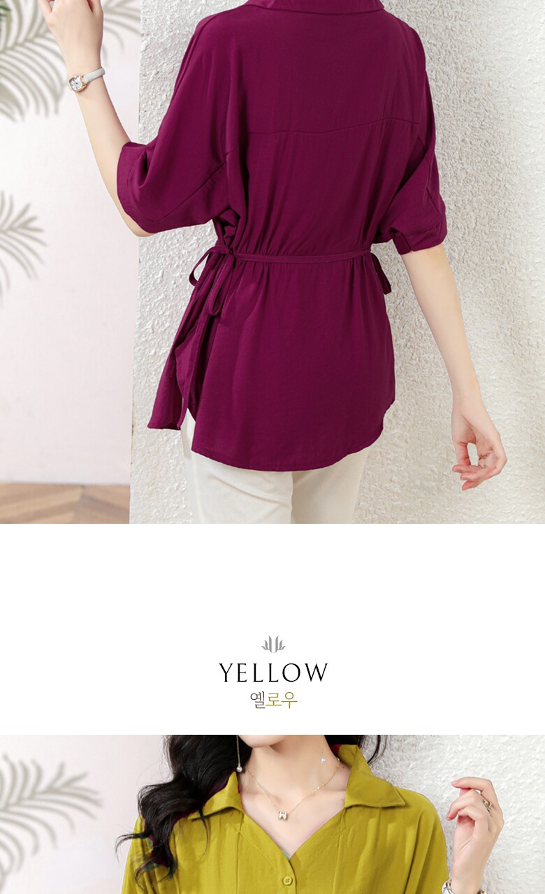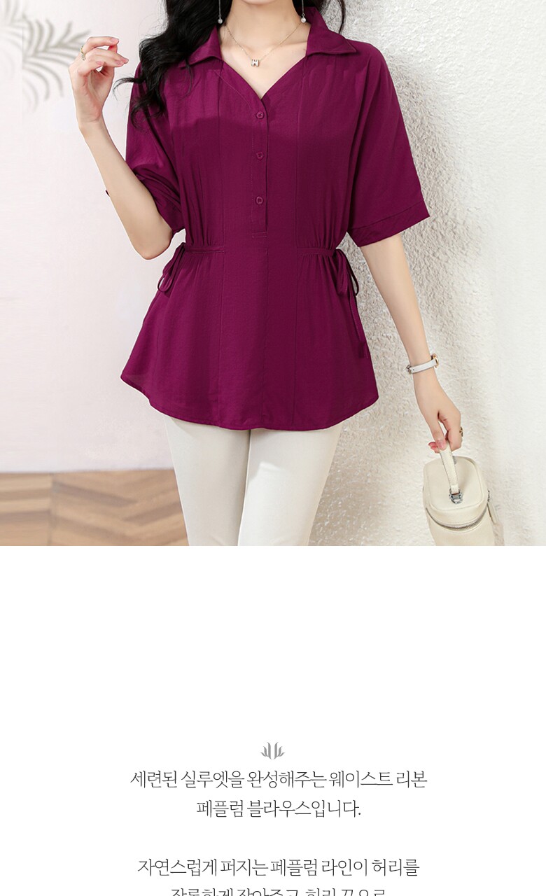 화세 리본타이페플럼블라우스_HB5MBL051C