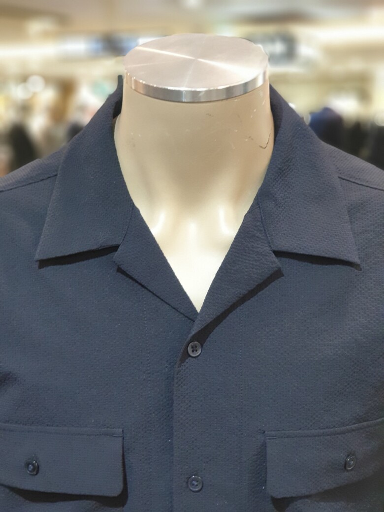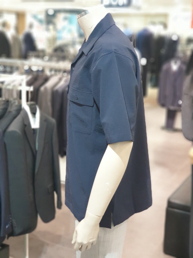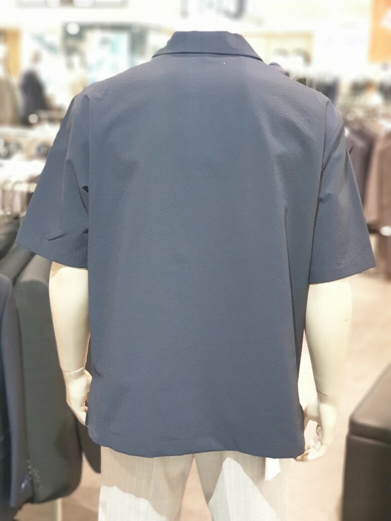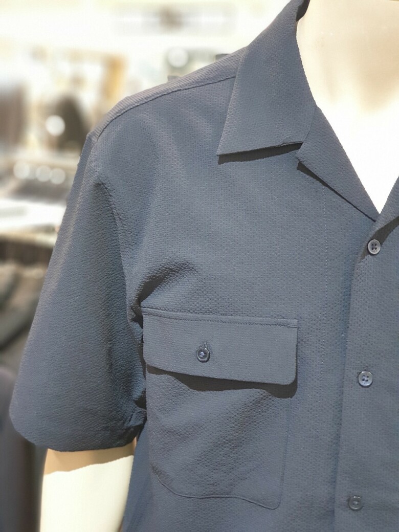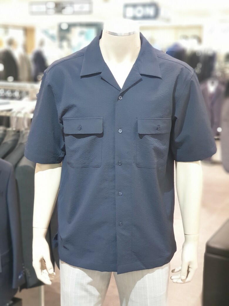 BON 25SS 네이비 오픈카라 자쿠지 써커 세미오버핏 반팔 남방셔츠BNEMBA688NY