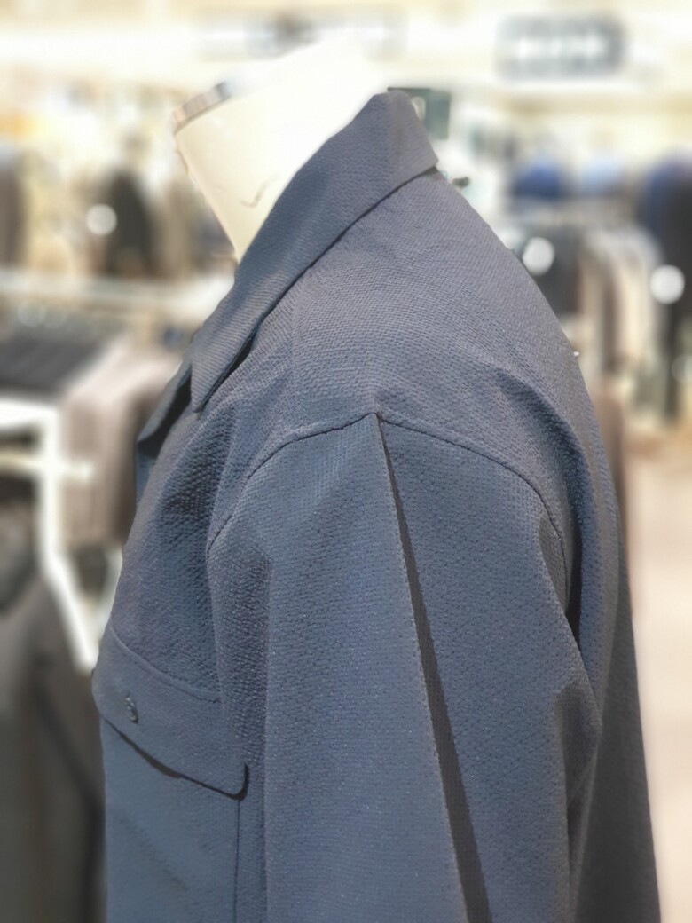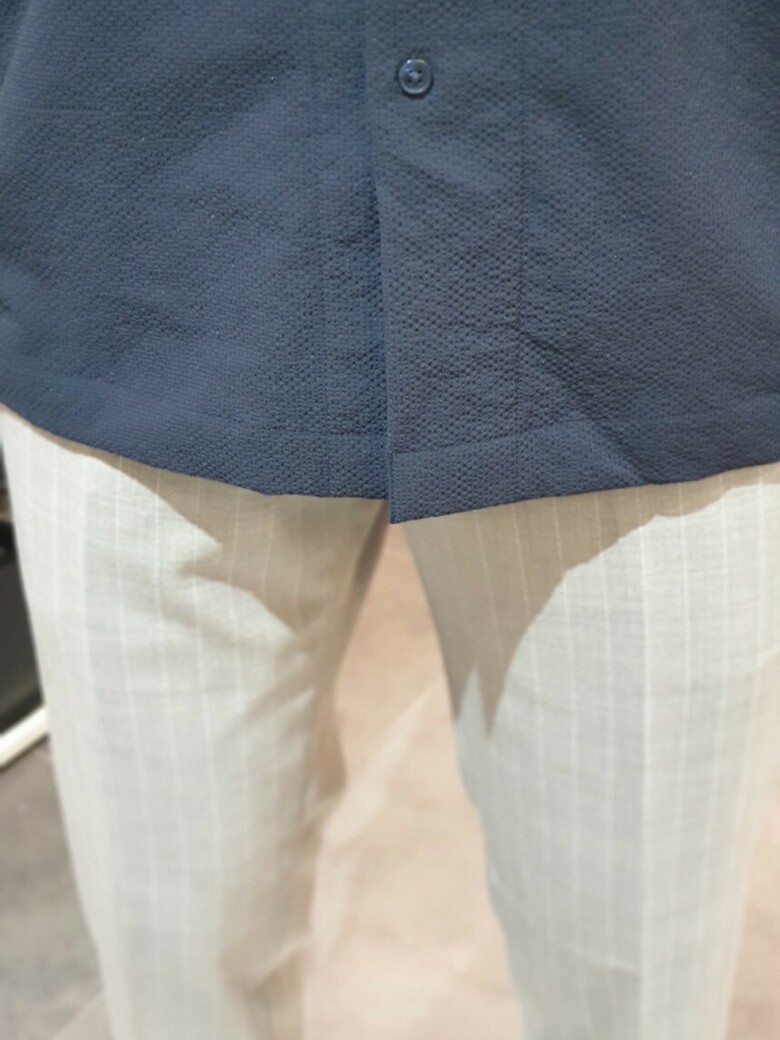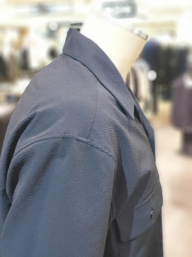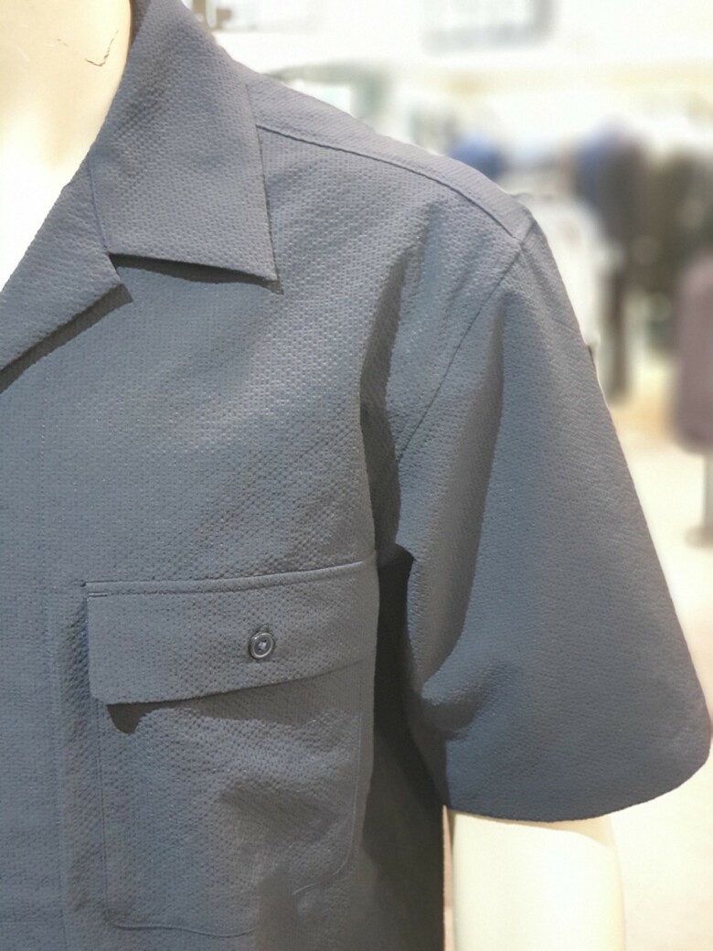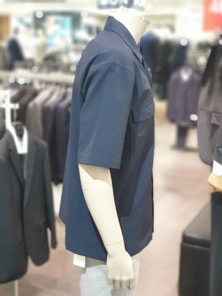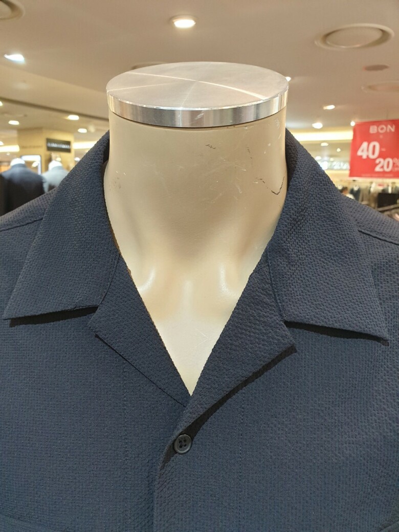 BON 25SS 네이비 오픈카라 자쿠지 써커 세미오버핏 반팔 남방셔츠BNEMBA688NY