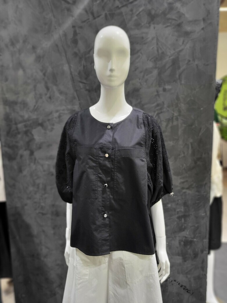 VOV 아일렛 슬리브 스트링 블라우스 7125260500101