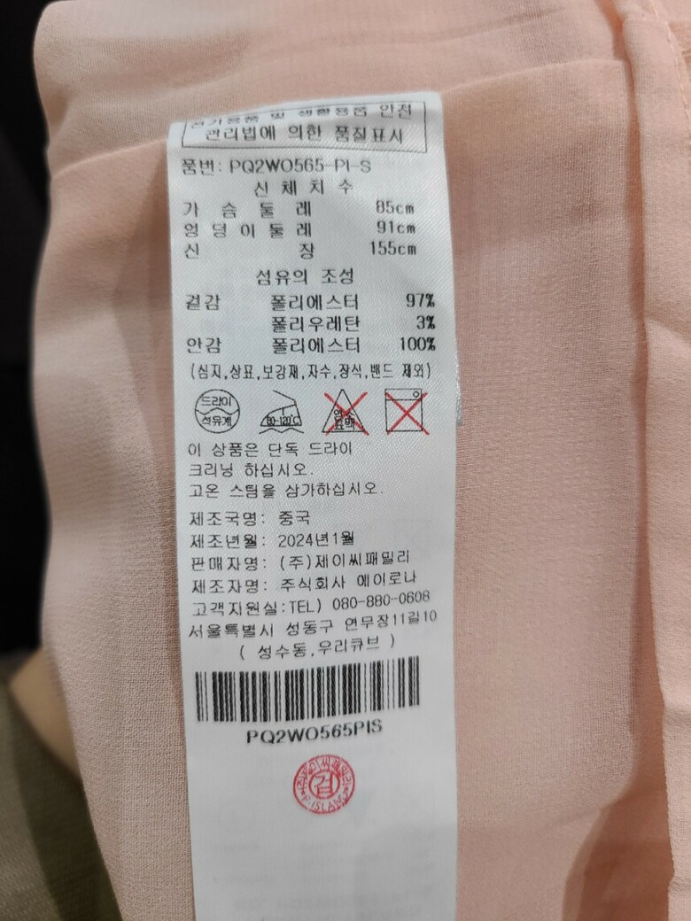 | 1. 제품 소재 (섬유의 조성 또는 혼용률을 백분율로 표시, 기능성인 경우 성적서 또는 허가서) | 겉감:폴리에스테르 97%, 폴리우레탄 3% / 안감:폴리에스테르 100% |