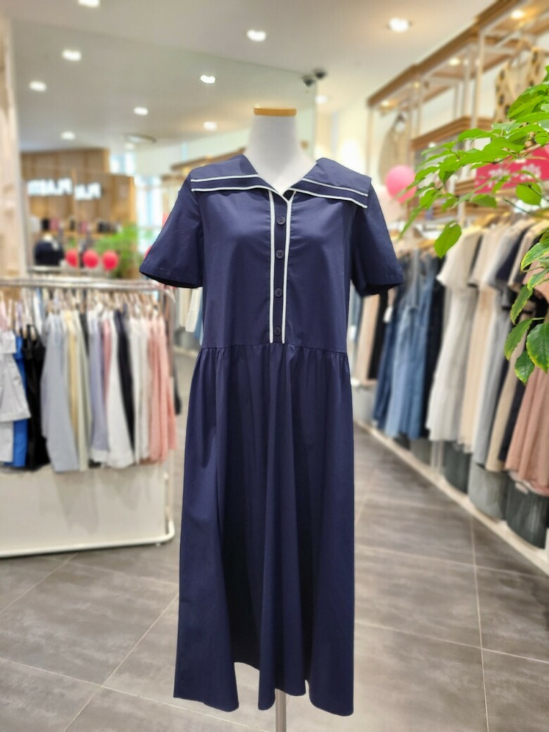 플라스틱아일랜드 시보리배색 세일러카라 루즈핏 원피스 PQ2WO563