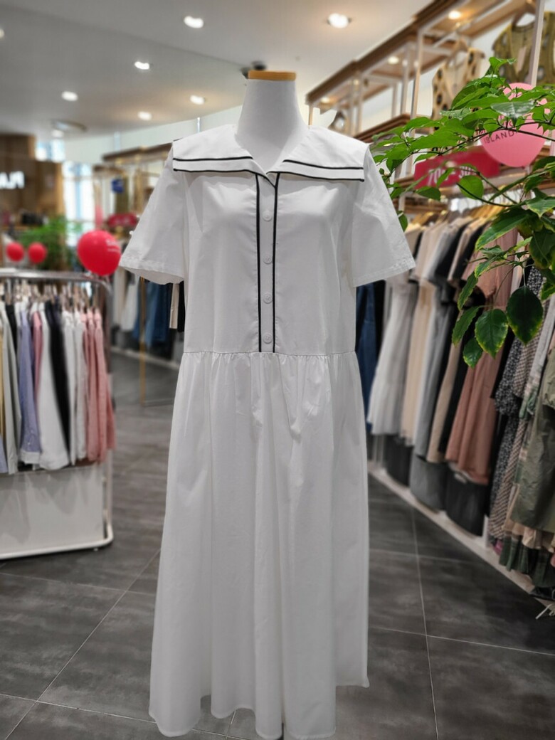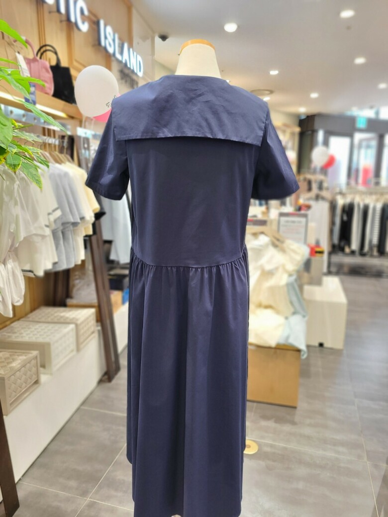플라스틱아일랜드 시보리배색 세일러카라 루즈핏 원피스 PQ2WO563