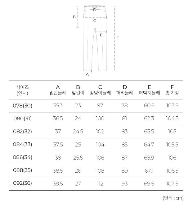 사이즈 : 78(29~30),80(31),82(32),84(33),86(34),88(35),92(36)