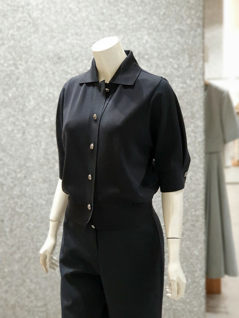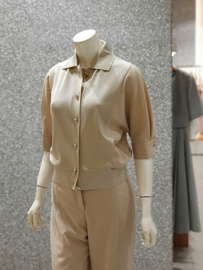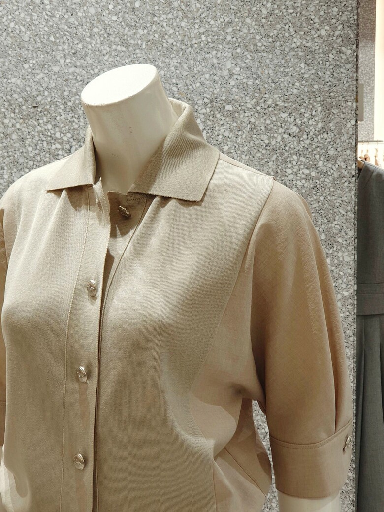 칼라 디자인이 정돈된 네크 실루엣을 연출하며