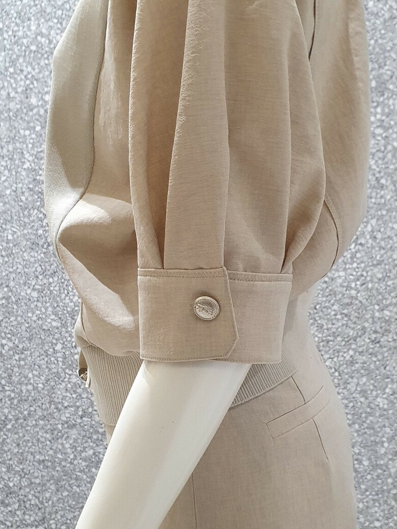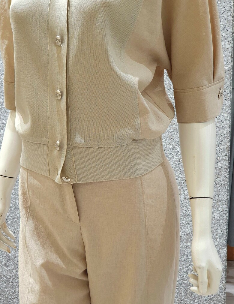 부분 니트 배색과 여밈 라인과 슬리브 헴 버튼 클로징