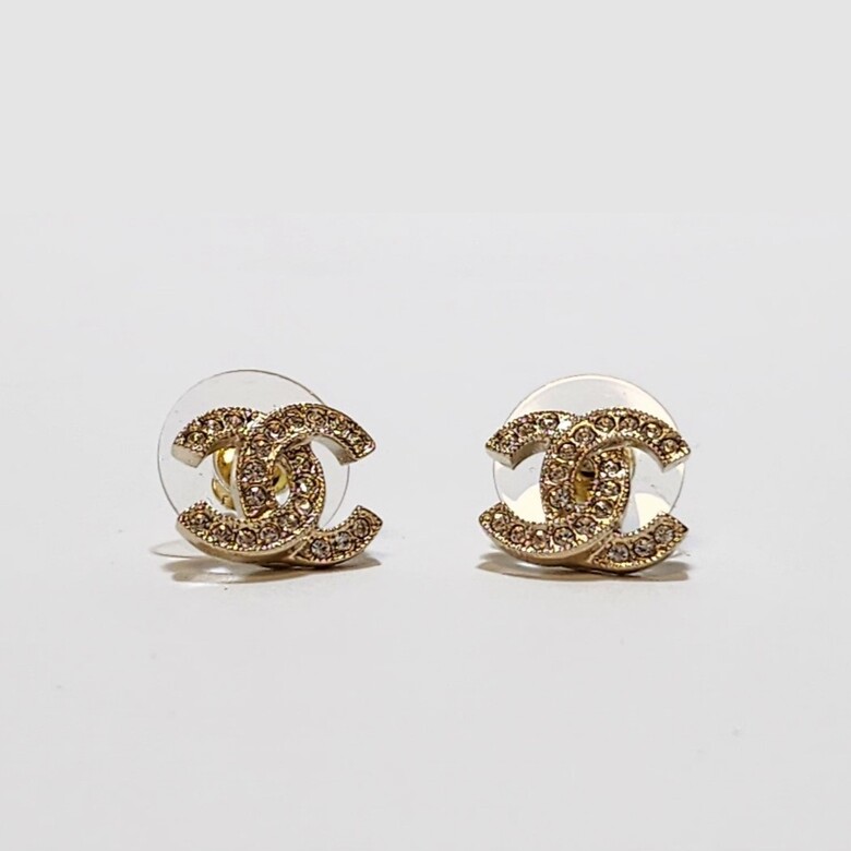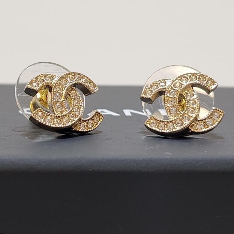 [명품] 샤넬 CC 로고 귀걸이 크리스탈 스트라스 골드 ABE100