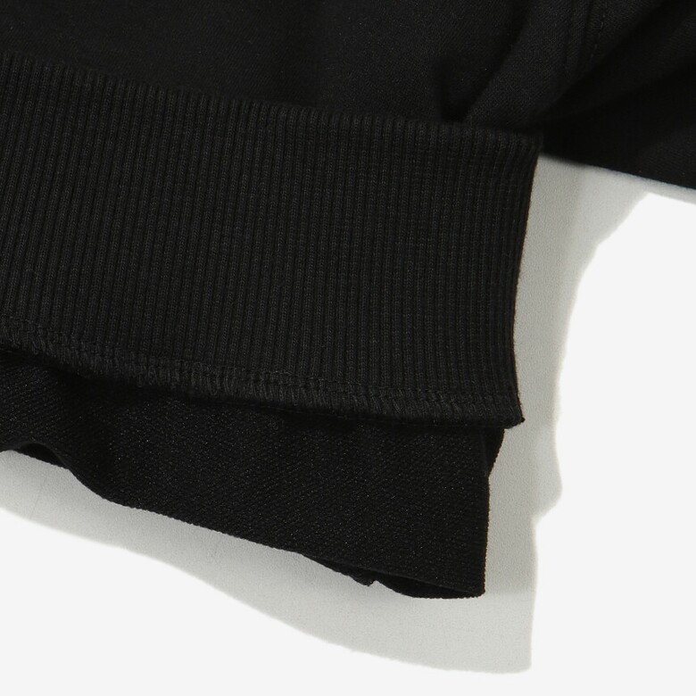 - 블랙무드와 그라데이션 로고를 활용한 세련된 무드로 살짝 크롭 기장이며 루즈핏으로 다양한 코디 가능
