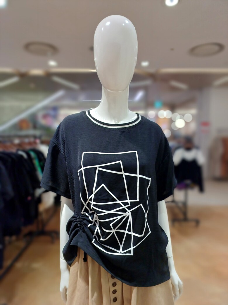 사각퍼즐패턴 프린팅이 유니크한 매력을 주며