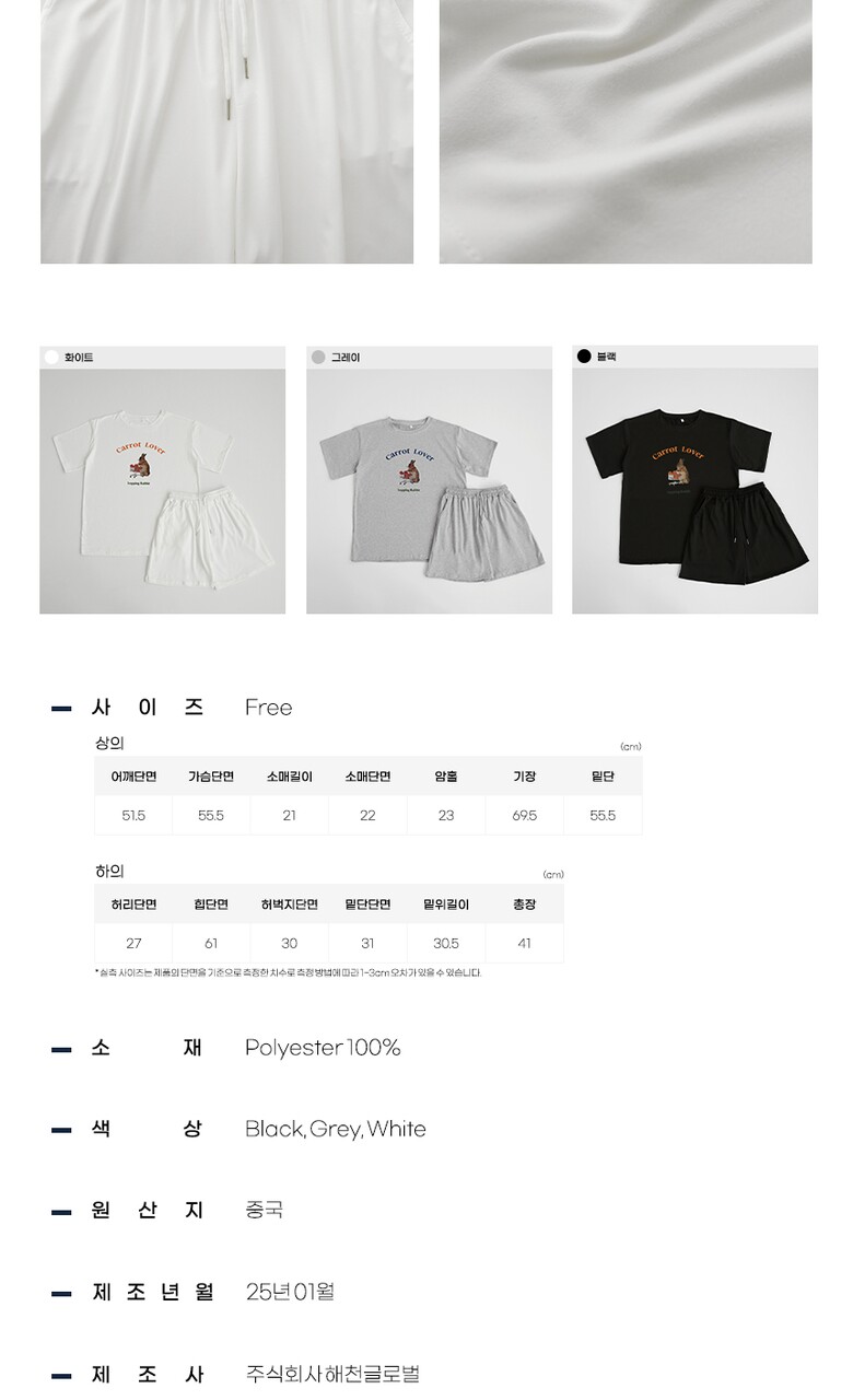 1. 제품 소재 (섬유의 조성 또는 혼용률을 백분율로 표시, 기능성인 경우 성적서 또는 허가서) 상품 상세페이지 참조