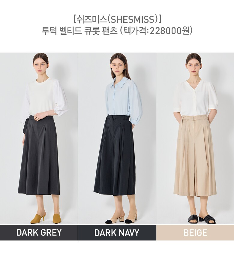 [쉬즈미스(SHESMISS)] 투턱 벨티드 큐롯 팬츠 (택가격: 228000원)