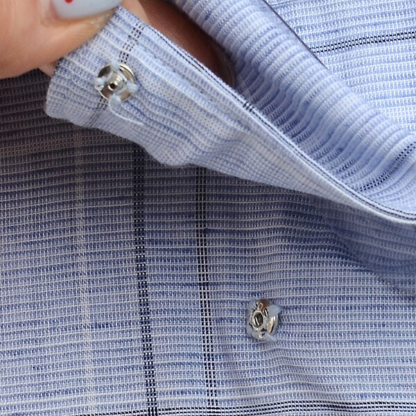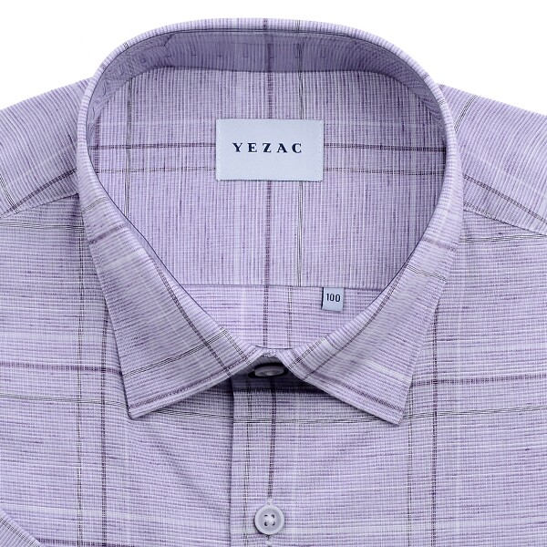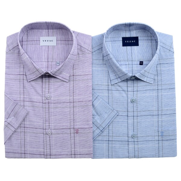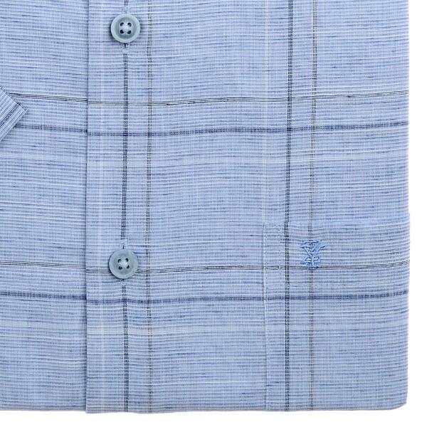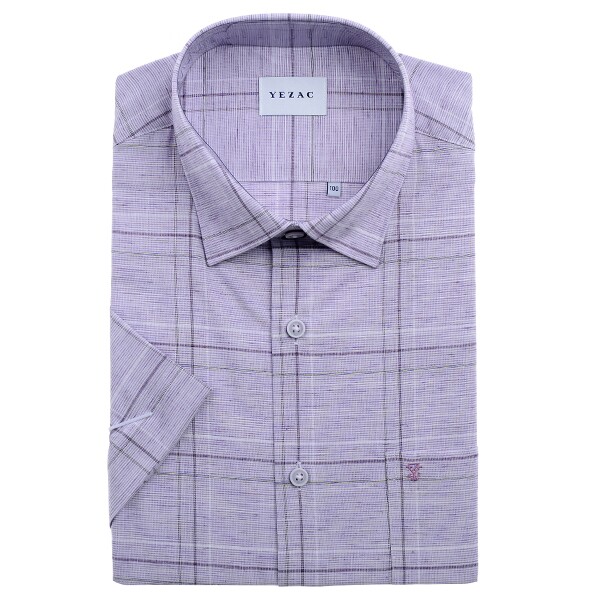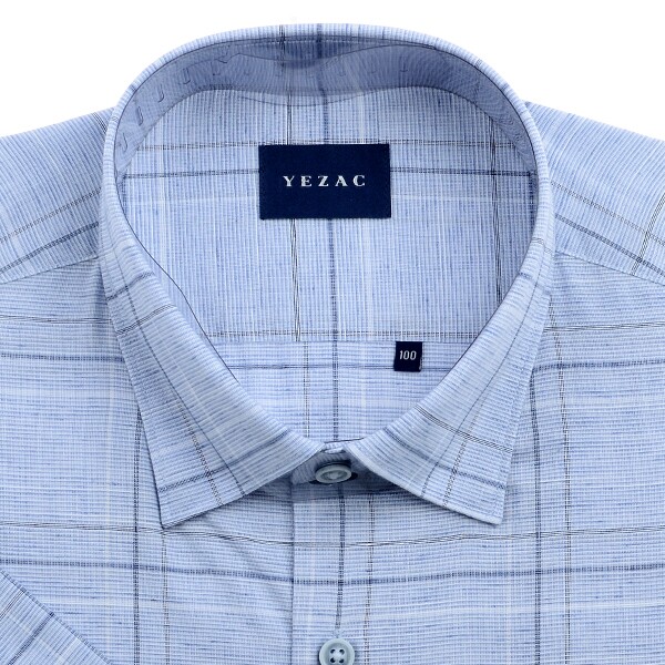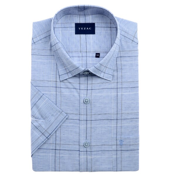 청량감 있는 린넨 혼방 빅체크 패턴으로 카라에 스냅을 달고 밑단을 일자로 만들어 캐주얼함을 더한 일반핏 반소매