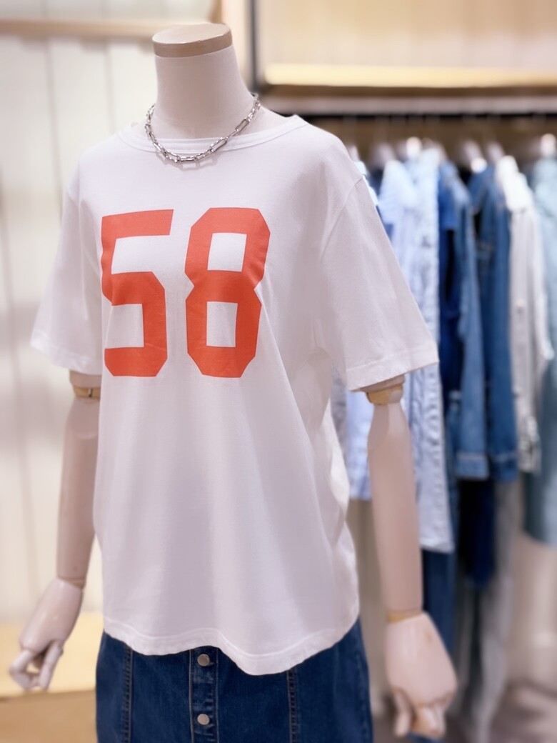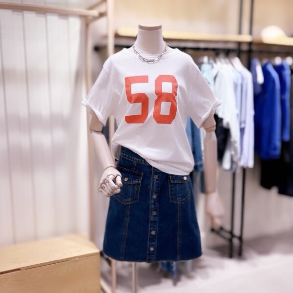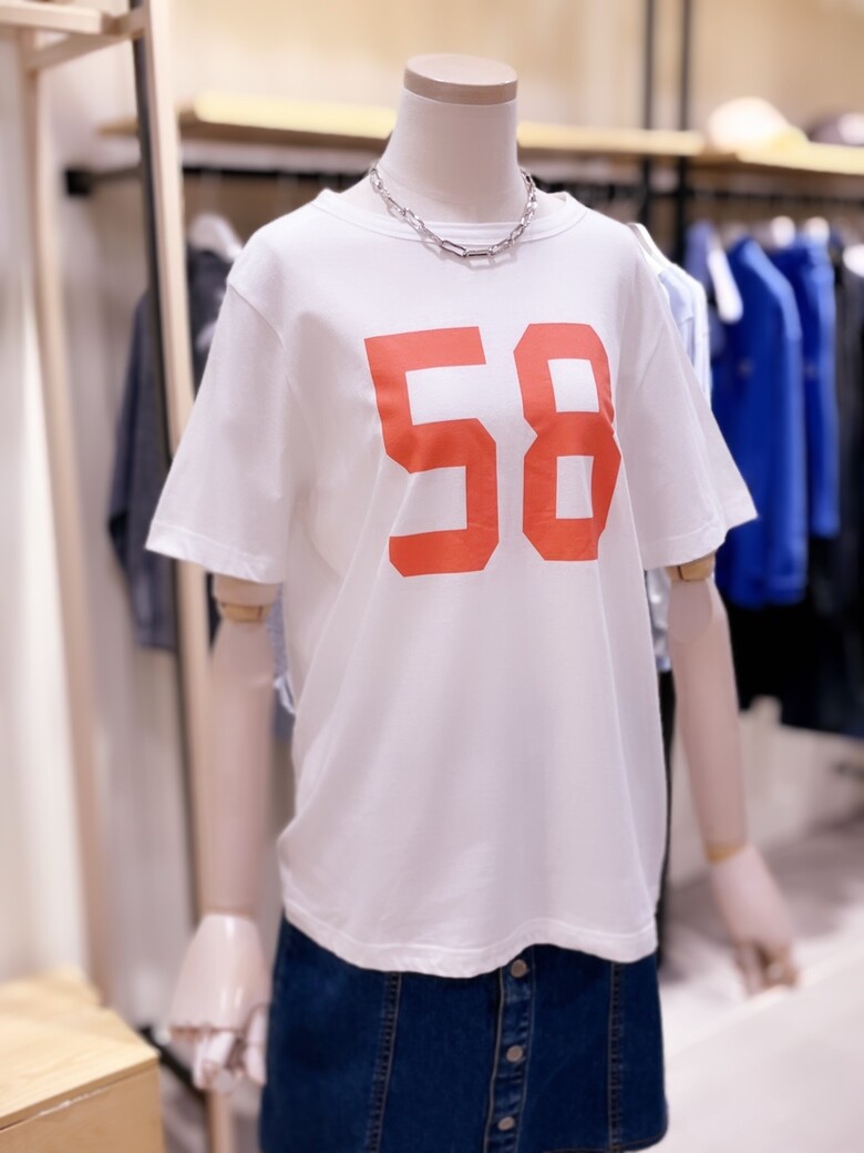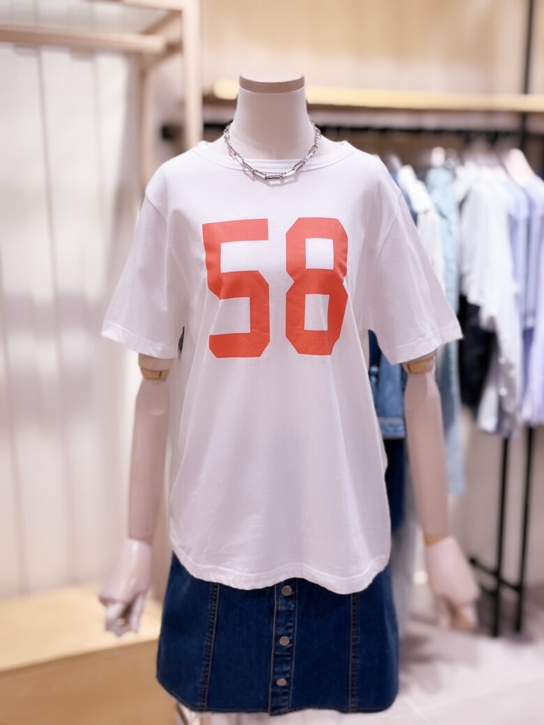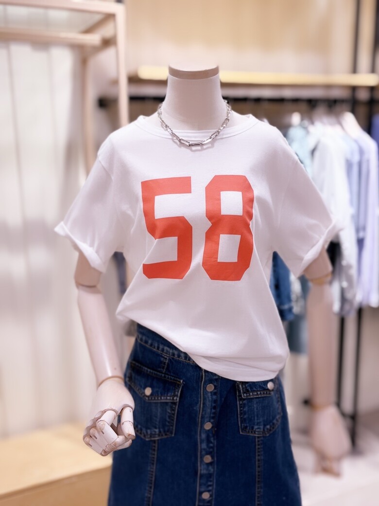 "58 프린트 레터링으로 시에로만의 느낌을 살린 요아이" 아우터 안에 포인트 이너로도 제격이랍니다"?