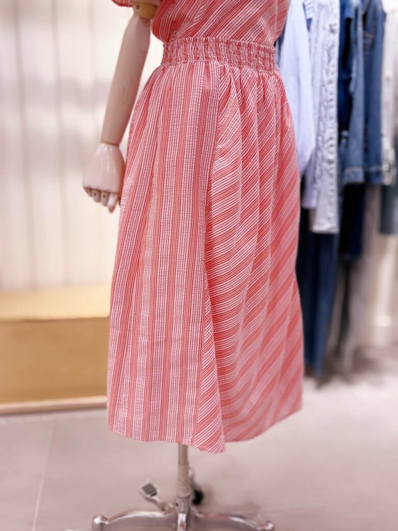 SF2DBSKF102_스트라이프 배색 스모킹 롱스커트