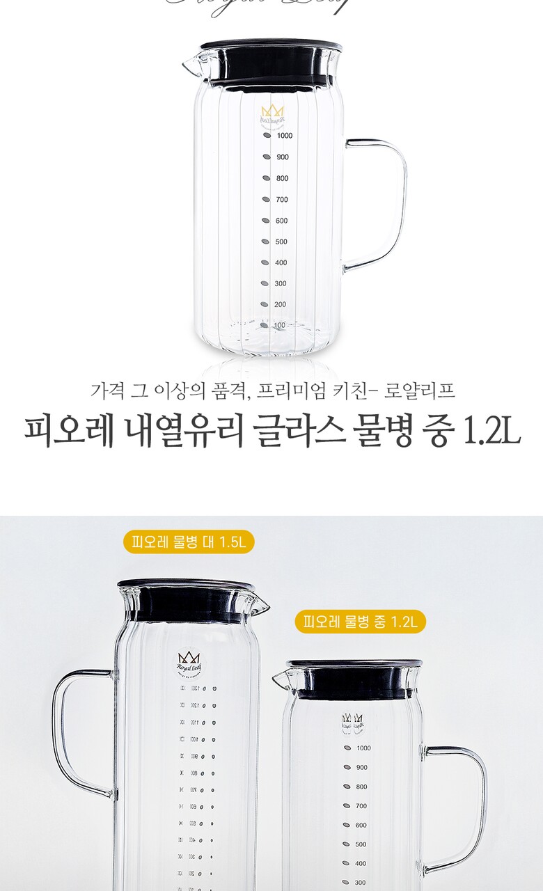 품명 및 모델명 : 로얄리프 피오레 내열유리 글라스 물병 중 1.2L