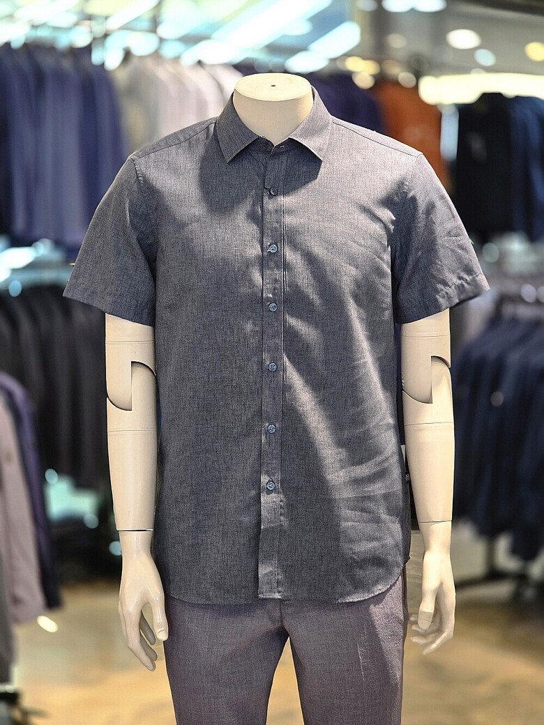 인디안 남성 린넨 블랜드 솔리드 반팔 셔츠 MIVNS3M-3171