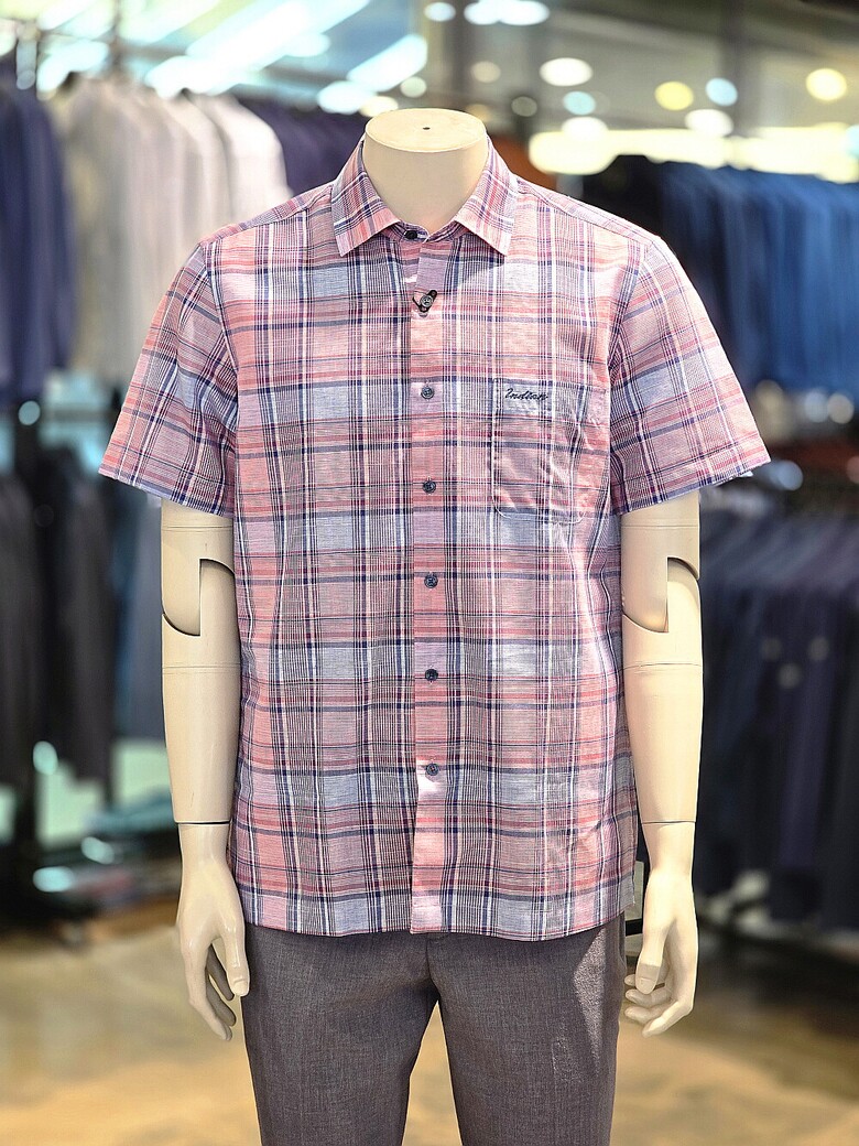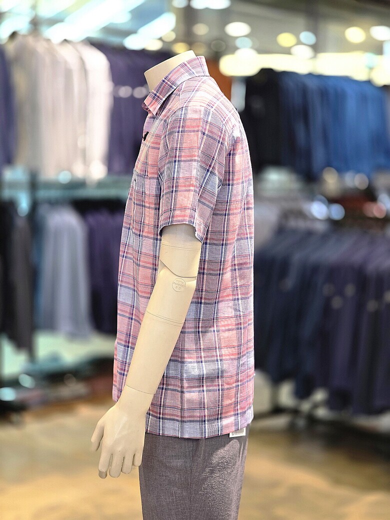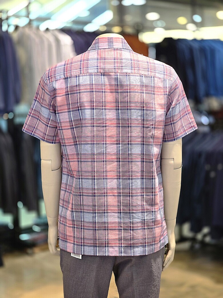 쾌적한 린넨소재의 체크 반팔셔츠입니다|*|