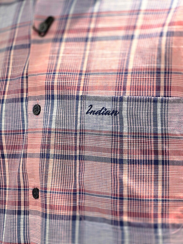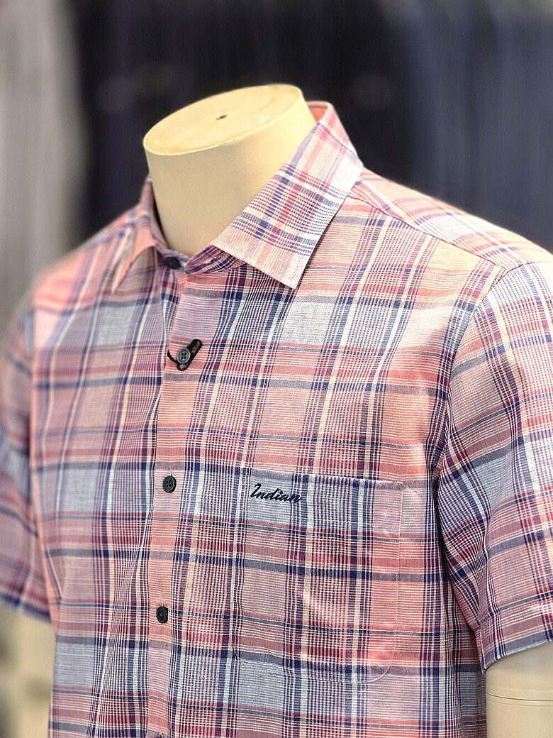 인디안 남성 여름 린넨 미디움 체크 반팔 셔츠 MITNS3M-3531